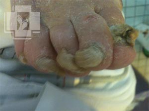 Η δυστροφία αυτή αφορά βασικά τα νύχια των μεγάλων δαχτύλων του ποδιού, υπάρχει