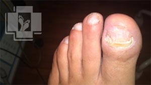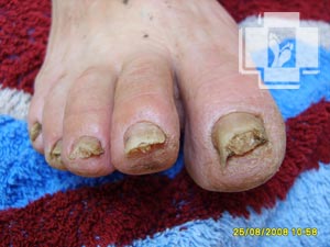 στα νύχια των δύο μεγάλων δακτύλων των ποδιών, χωρίς αυτό να εμποδίζει την εξάπλωση